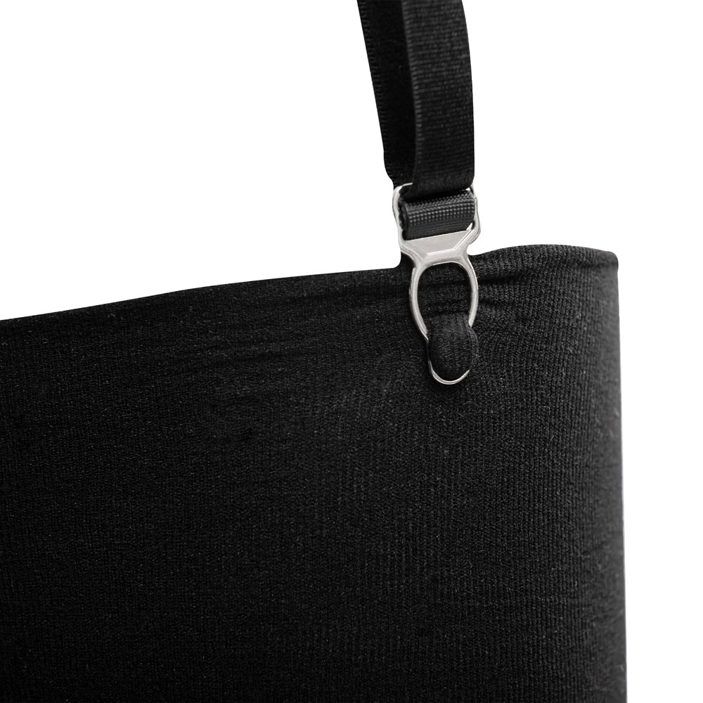 This dress is made of stretchy wetlook material and is finished with lace on the sides. It has a silver zip at the front, and 4 adjustable elastic bands with clips at the bottom. These straps are detachable if desired. To these, the free supplied stockings can be attached. The elastic at the neck is easily adjustable using a slider.